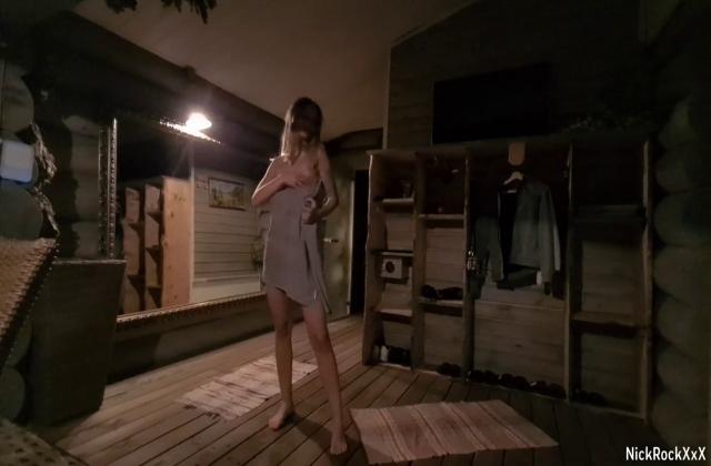 Жаркий секс в русской бане с молодой блондинкой